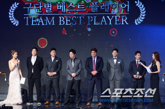 올해 신설된 '구단 베스트 플레이어상'은 KIA 양현종(3521점), 미네소타 박병호(5207점), 두산 김현수(4265점), 롯데 최준석(3328점), 삼성 최형우(4107점), SK 김광현(2745점), NC 나성범(4267점), LG 박용택(2763점), kt 박경수(2472점), 한화 김태균(3169점) 등 구단별로 가장 높은 카스포인트를 받은 선수들에게 돌아갔다.