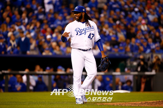 | 쟈니 쿠에토가 샌프란시스코 자이언츠와 6년 1억3000만달러에 계약했다. 지난 10월 29일(한국시각) 캔자스시티 로열스 투수로 뉴욕 메츠와의 월드시리즈 2차전에 등판한 쿠에토. ⓒAFPBBNews = News1 |