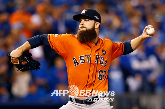 휴스턴 애스트로스 댈러스 카이클은 올해 아메리칸리그 사이영상을 수상한 최정상급 왼손 투수다. 지난 10월 15일(한국시각) 캔자스시티 로열스와의 디비전시리즈 5차전서 투구를 하고 있는 카이클. ⓒAFPBBNews = News1