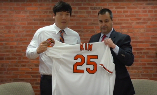 입단후 유니폼을 들고 포즈를 취한 김현수. 볼티모어 홈페이지