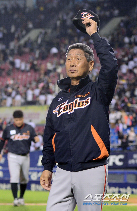 2일 오후 서울 잠실야구장에서 2015 프로야구 한화와 LG의 경기가 열렸다. 6대3으로 승리한 후 한화 김성근 감독이 관중들에게 인사하고 있다. 잠실=김경민 기자 kyungmin@sportschoun.com / 2015.10.02.
