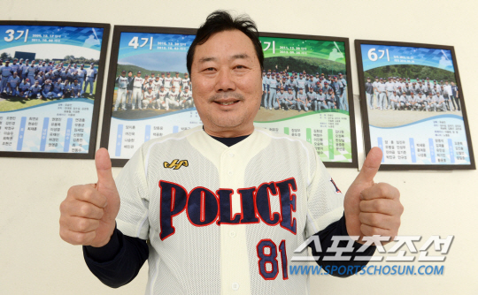 투수 장원준 진야곱, 포수 양의지 최재훈, 내야수 허경민, 외야수 민병헌 박건우. 지난해 두산 베어스의 한국시리즈 우승 멤버들이다. 이들의 공통점이 하나 더 있다. 유승안 감독(60)이 부임한 후 경찰야구단을 거친 선수들이다. 19일 경기도 고양시 벽제 서울지방경찰청 수련장 내 야구단 사무실에서 만난 유 감독은 "경찰야구단 출신 선수들이 두산을 우승으로 이끄는 걸 보면서 가슴이 뿌듯했다. 마치 내 아이들이 뛰는 걸 보는 느낌이었다"고 했다.