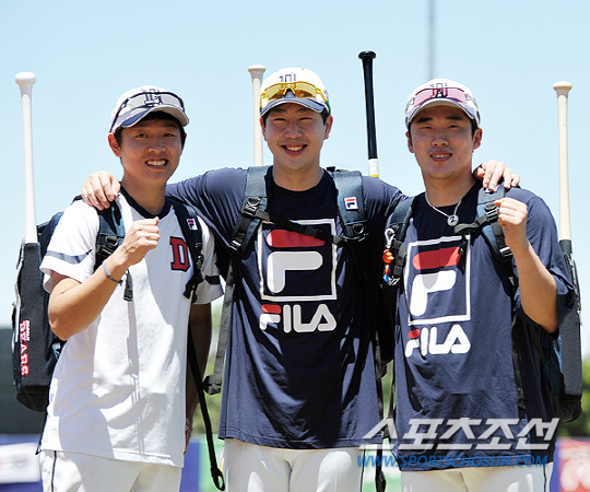 두산 베어스 '90년 삼총사'가 호주 현지에서 당찬 각오를 전했다. 2008년 캐나다 에드먼턴 세계청소년야구선수권대회 우승의 주역들. 지난해에는 한국시리즈에서 나란히 맹활약하며 두산이 14년 만에 우승 트로피를 들어 올리는 데 공을 세웠다.