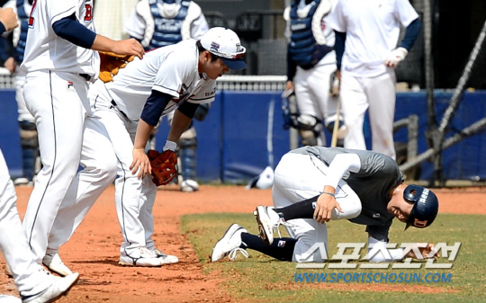 두산 베어스 선수단이 호주 시드니 블랙타운 올림픽 파크에서 2016 전지훈련을 펼치고 있다. 지난 26일 오전 진행된 훈련에서 3루주자로 나서 협살상황을 연습하던 정수빈이 갑자기 방향을 바꾸던 중 그라운드에 미끄러지며 오른쪽 발목을 접지르는 아찔한 상황을 맞았다. 그러나 다행히 큰 부상은 아니었다. 잠시 휴식을 취한 정수빈은 곧바로 다시 일어서 훈련에 참여하는 정신력을 보여줬다.