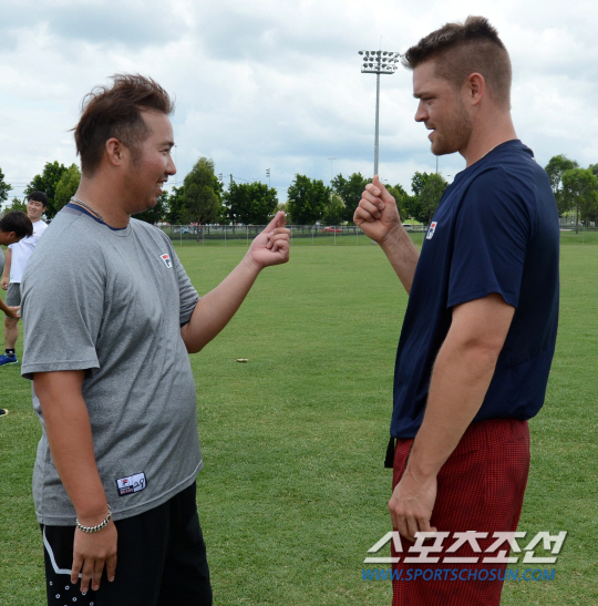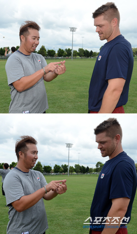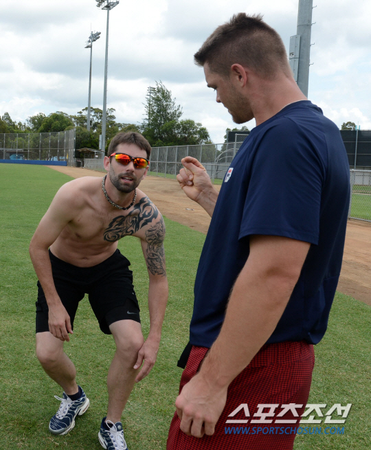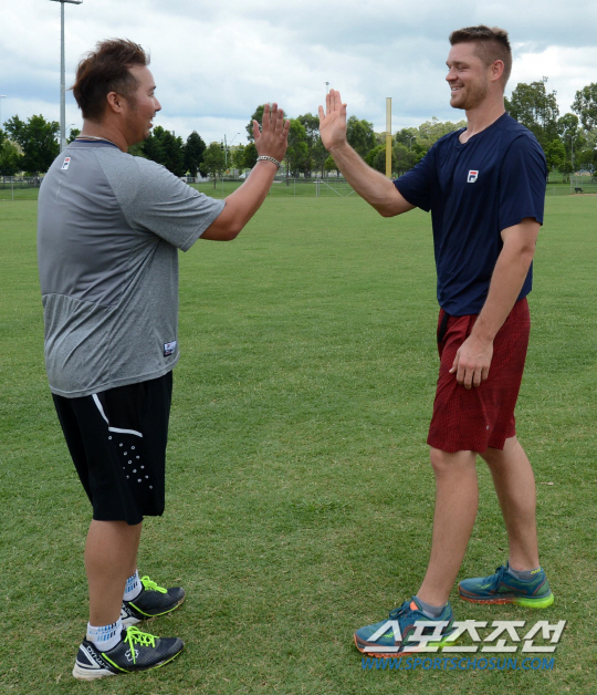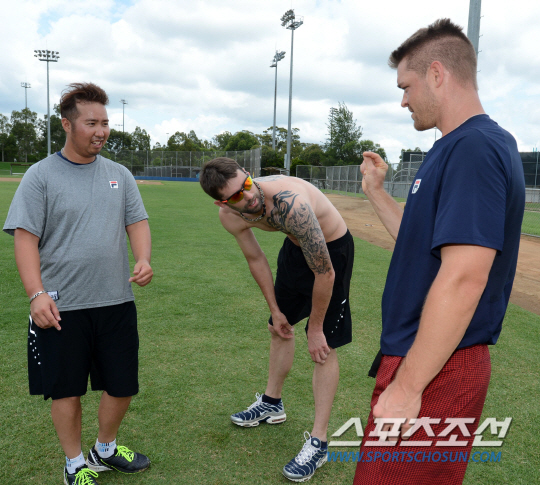 지난 26일 호주 시드니의 두산 스프링캠프 훈련장, 유희관과 보우덴은 100미터가 넘는 거리를 왕복으로 달리는 셔틀런 훈련을 하고 있었다. 자타가 공인하는 분위기 메이커, 두산 베어스 유희관은 특유의 친화력을 뽐내며 외국인 투수 마이클 보우덴에게 요즘 유행하는(?) '미니하트'를 가르쳐주는 모습을 보여주는 여유를 뽐냈다.