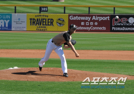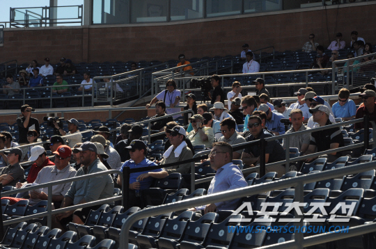 롯데 자이언츠와 일본프로야구 니혼햄 파이터스의 연습경기 2차전이 열린 11일(한국시각) 미국 애리조나주 피오리아 스포츠컴플렉스. 이날 양팀의 경기는 니혼햄이 '괴물투수' 오타니를 첫 실전 등판 시켜 많은 관심을 받았다.