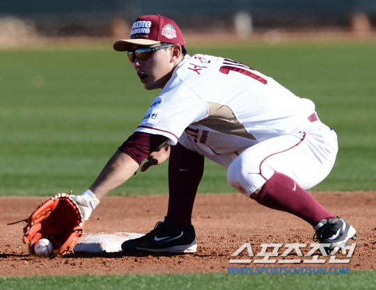 넥센 히어로즈 선수단이 25일(한국시각) 미국 애리조나주 서프라이즈 스프링캠프에서 훈련을 했다. 서건창이 수비훈련을 하고 있다. 서프라이즈(미국 애리조나주)=정재근 기자 cjg@sportschosun.com