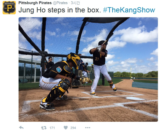 클린트 허들 피츠버그 감독은 강정호의 훈련에 선을 그어 주었다. 타격은 배팅케이지 안과 티 배팅을 하는 것이다. 또 3루 수비도 필드에 나가 코치가 쳐주는 공을 잡아 1루로 송구하는 정도다.