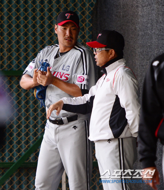 23일 오후 일본 오키나와 이시가와 구장에서 LG 트윈스의 전지훈련이 열렸다. LG 양상문 감독이 유원상, 이동현 등 선수들의 불펜 피칭을 키켜보고 있다.