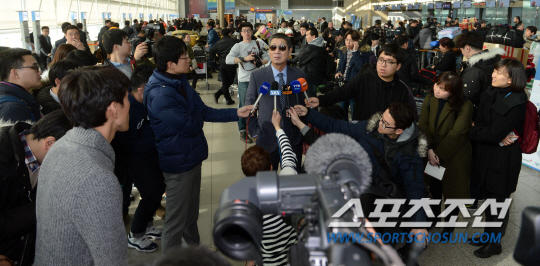 한화 이글스 선수단이 2016 일본 전지훈련을 위해 15일 인천공항을 통해 출국했다. 김성근 감독이 인터뷰를 하고 있다. 한화의 전지훈련은 15일부터 오는 3월 3일까지 일본 고치와 오키나와에서 실시된다. 1차 전지훈련 장소인 고치에서는 김성근 감독을 포함한 코칭 스태프 15명과 주장 정근우 등 선수 32명이 훈련을 진행한다. 2월 13일 오키나와로 이동해 고친다 구장에서 2차 전지훈련을 진행하며 국내외팀들과 10차례 연습경기도 함께 실시될 예정이다. 인천공항=허상욱 기자 wook@sportschosun.com/2016.01.15/