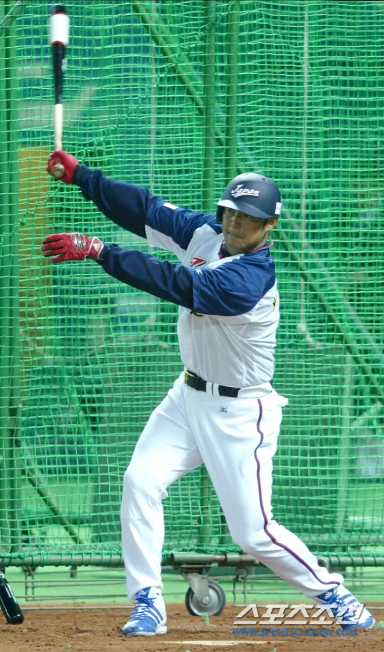 2006년 WBC 일본대표팀의 4번을 맡은 마쓰나카. 후쿠오카돔에서 연습타격을 하는 모습. 후쿠오카돔=최문영 기자