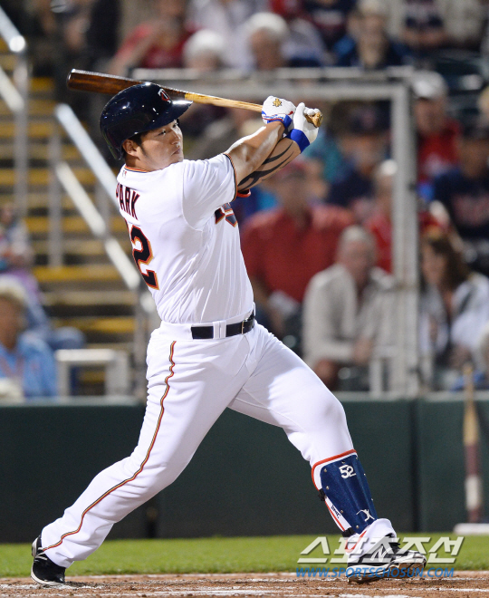 미네소타 트윈스 박병호가 시범경기 두 번째 게임만에 첫 안타를 날렸다.