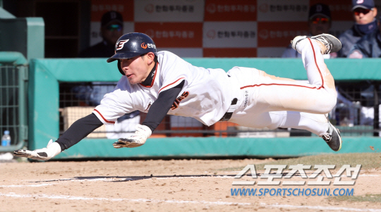 무한 경쟁속에서 살아남을 수 있는 방법은 결국 '차별화'라는 이야기다. 아예 압도적으로 다른 경쟁자들을 누를만큼의 실력이 아니더라도 확실한 차별점 하나만으로도 자기 입지를 세울 수 있다는 뜻이다. 김 감독은 최근 시범경기에서 주목을 받은 신인 외야수 강상원의 사례를 들었다. 2016 신인드래프트에서 전체 99번으로 입단한 강상원은 지난 10일 대전 한화생명 이글스파크에서 열린 두산 베어스와의 시범경기에서 7회 대주자로 나와 2루 도루를 성공하더니 짧은 중견수 플라이 때 3루까지 재빠르게 뛰었다. 또 두산 3루수 류지혁이 잠시 공을 놓친 틈을 노려 용수철처럼 뛰어올라 홈까지 들어왔다.