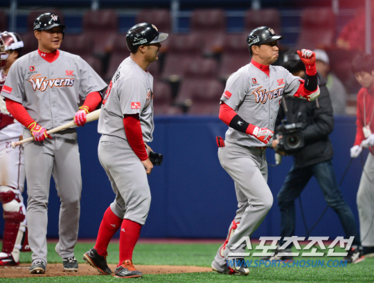 SK 와이번스 김강민이 고척 스카이돔 프로야구 첫 홈런을 기록했다.