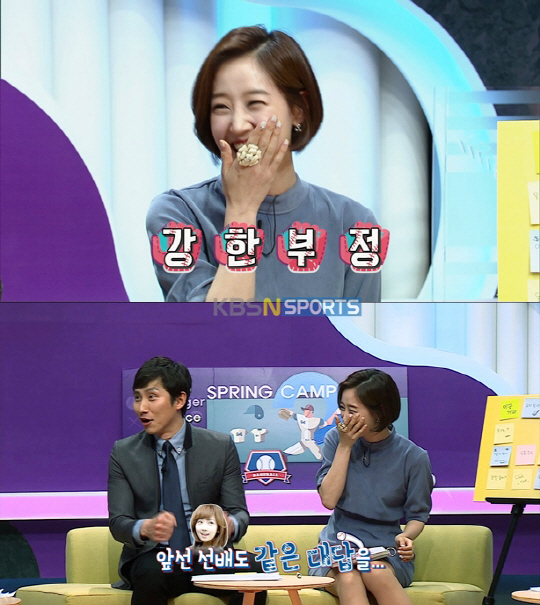 수많은 질문 중 유독 KBSN 아나운서와 야구선수 커플이 많은 이유를 궁금해하는 질문에 강성철 아나운서는 "이번 스프링 캠프에서도 여자 아나운서에 대한 관심을 보이는 선수가 있었다"라며 "현재 오효주 아나운서에 대한 야구선수들의 관심이 높다"라고 폭로했다.