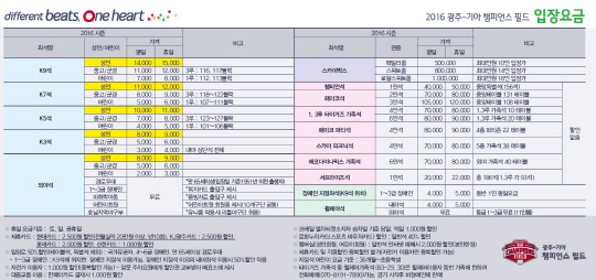 일반 관람석은 지난해처럼 K9존, K7존, K5존, K3존, 외야석으로 구분해 판매한다. 내야 중앙 지정석인 K9존은 지난해와 요금이 같다. 성인 1만4000원, 중고생 및 군경 1만1000원, 어린는 7000이다. 1,3루 내야 하단석인 K7존은 성인 1만1000원, 중고생 및 군경 8000원, 어린이 5000원이다. K5존은 성인 1만원, 중고생 및 군경 7000원, 어린이 4000원이다. 어린이를 제외하고 1000원씩 올랐다.