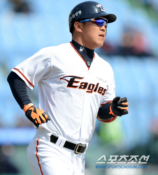 한화와 LG의 2016 KBO 리그 시범경기가 15일 대전 한화생명 이글스파크에서 열렸다. 3회말 한화 정근우가 우익수 앞 안타를 치고 1루로 달리고 있다. 대전=허상욱 기자 wook@sportschosun.com