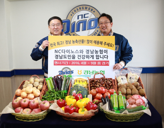 NC 다이노스와 경남농협(본부장 김진국)이 지난해에 이어 올해도 창원 마산야구장에서 경남 시군별 대표 농산물을 알린다.