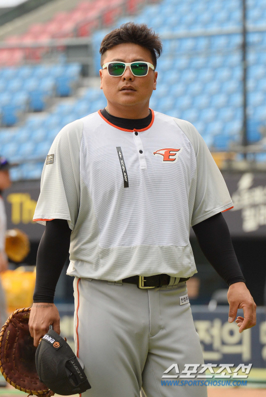 2016 프로야구 KBO리그 LG트윈스와 한화이글스의 경기가 1일 서울 잠실야구장에서 열렸다. 경기전 한화 김태균이 수비훈련에 열중하고 있다. 잠실=최문영 기자 deer@sportschosun.com