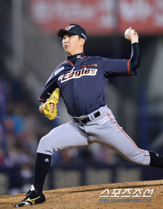 2016 프로야구 KBO리그 LG트윈스와 한화이글스의 개막전 경기가 경기가 1일 서울 잠실야구장에서 열렸다. 한화 5번째 투수 정우람이 한화 타선을 상대로 역투하고 있다. 잠실=최문영 기자 deer@sportschosun.com