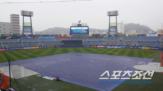 NC 구단은 오전 일찍부터 내야를 뒤덮는 방수포를 깔고 대비를 했지만 계속 내린 비로 경기 진행이 어려웠다. 경기 시작 1시간 전까지 기다렸지만 비는 멈출 기미를 보이지 않았다.