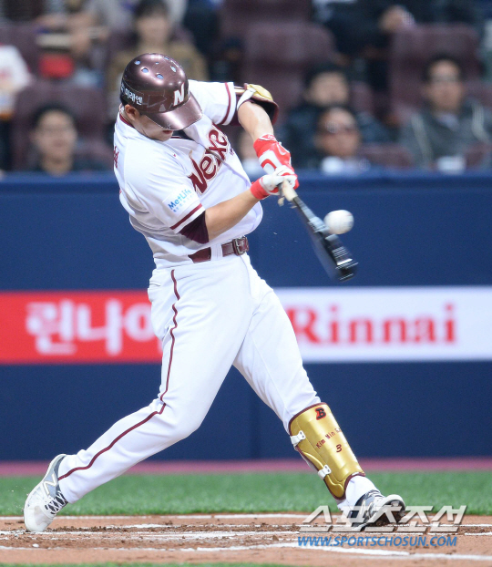 2016 프로야구 KBO리그 넥센히어로즈와 롯데자이언츠의 경기가 2일 서울 고척 스카이돔에서 열렸다. 넥센 김민성이 1회말 2사 3루에서 1타점 적시안타를 치고 있다. 고척돔=최문영 기자 deer@sportschosun.com