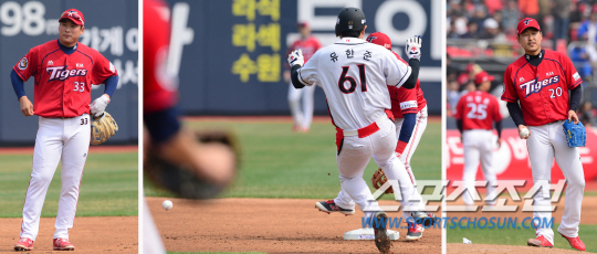 이날도 분위기는 크게 다르지 않았다. 주자가 없는 상황에서 퀵모션으로 재빨리 공을 던지는 등 나름 변화를 줬지만, 효과는 크지 않았다. 기본적으로 직구에 힘이 없었다. 변화구 일변도의 피칭으로 상대가 부담을 갖지 않았다. 그는 전성기 시절 140㎞ 후반 직구-140㎞ 초반 슬라이더로 위력을 떨쳤지만 요즘 직구가 140㎞ 초반에 머물고 있다.