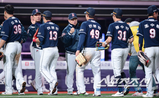 하지만 개막 직전까지 이 세팅이 쉽지 않았다. 중심을 잡아야 할 외국인 선수 가운데 2명(보우덴, 에반스)이나 물음표가 달렸기 때문이다. 또 불펜진 가운데 확신을 주는 선수는 이현승뿐이었다. 김현수의 공백을 어떻게 메울지도 해답을 찾기 힘들었다. 그럼에도 김 감독은 참고 기다렸다. 무리해서 선수들을 압박하지 않았다. 일례로 시범경기 동안 페이스가 좋지 않은 양의지를 지명 타자로 내보내며 체력 안배를 해줬다. 컨디션이 올라오지 않은 정재훈은 아예 등판시키지 않았다. 결국 주전들이 약속이나 한 듯 개막과 함께 살아났다. 공수에서 특별한 구멍이 보이지 않는 이유다.