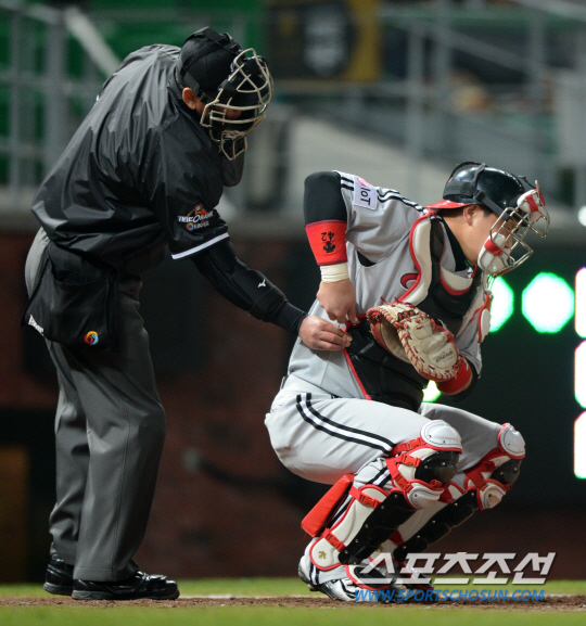 이번 시즌부터 포수와 주자의 홈 충돌을 막기 위해 공이 오기 전 포수는 베이스를 비워줘야 한다는 규칙이 새로 생겼다. 포수가 홈을 막고 있다고 판정되면 무조건 세이프. 3루심이자 조장 최수원 심판이 비디오 판독을 했고, 아웃을 세이프로 번복했다. 정상호가 송구를 받기 전 왼발로 베이스를 막고 있는 모습이 포착됐다.