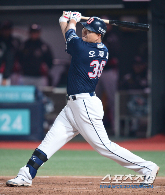 오재일은 1일 광주 KIA 타이거즈전에서 4번 1루수로 선발 출전해 1-0이던 4회 우월 홈런을 폭발했다. 1회 첫 타석에서 KIA 선발 양현종의 슬라이더를 잡아 당겨 우전 안타를 날린 그는 4회에도 선두 타자로 나와 초구 126㎞ 슬라이더를 통타해 105m짜리 대포로 연결했다.