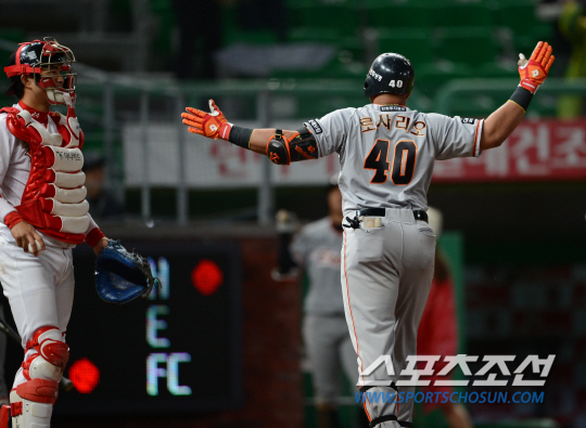하지만 우완 정통파 김승회의 밋밋한 슬라이더는 로사리오에게 좋은 먹잇감이었다. 김승회의 슬라이더는 높은 코스에서 스트라이크존 한복판으로 날아들어왔다. 치명적인 실투였다. 그리고 2012년 메이저리그 콜로라도 로키스에서 한 시즌에 28홈런을 쳤던 로사리오는 이런 실투를 놓치는 캐릭터가 아니었다.