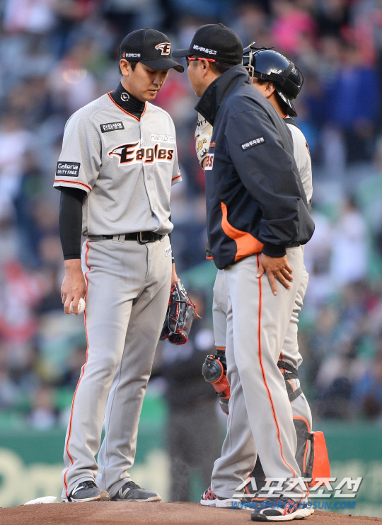 한화 이글스 우완 선발 투수 심수창이 아웃카운트 1개도 못잡은 채 1회에 조기강판 되고 말았다.