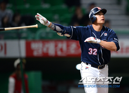 10일 현재 김재환의 장타율은 무려 9할6푼8리. 규정타석에 모자라 순위에는 들지 못했지만 현재 수치만으로도 놀랍다.