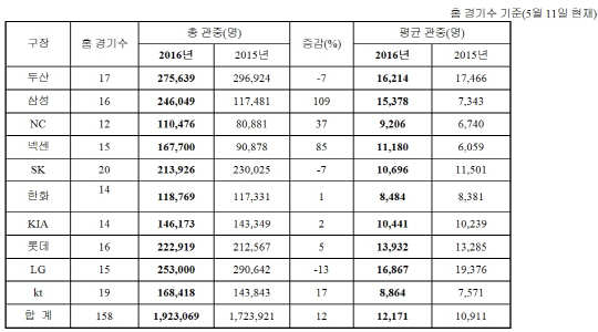 KBO리그 2016시즌 관중 흥행이 시즌 초반 순항하고 있다.