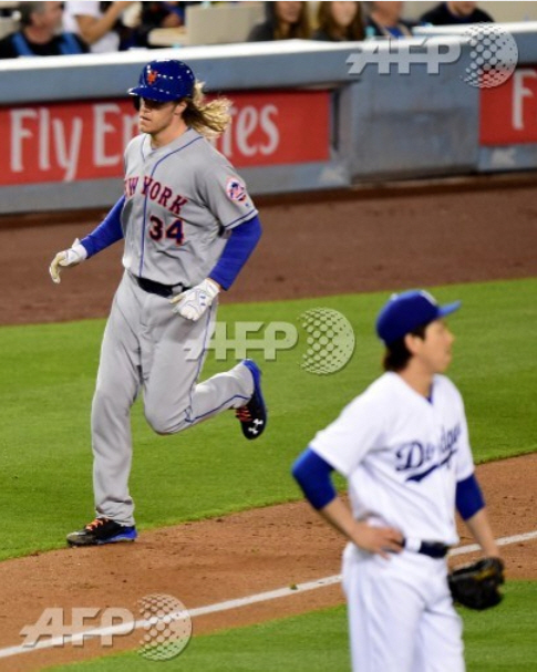LA 다저스 마에다 겐타가 12일 뉴욕 메츠전 5회 상대 선발 노아 신더가드에게 3점 홈런을 맞았다. 3회 1점 홈런에 이은 두번째 피홈런.ⓒAFPBBNews = News1
