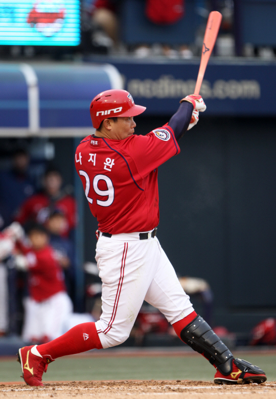 KIA 타이거즈 4번타자 나지완이 한화 이글스 필승 마무리 정우람으로부터 솔로 홈런을 뽑아냈다.