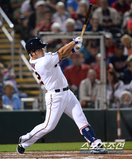 박병호는 2회 선두로 첫 타석에 들어섰다. 박병호는 상대 선발 트레버 아우어를 상대로 2루타를 때려냈다. 초구는 스트라이크를 그냥 보냈다. 2구는 높은 볼. 3구는 바깥쪽 낮은 스트라이크였다. 4구째가 승부처. 바우어가 낮은 커브를 던졌는데, 박병호가 방망이를 내려다 잘 참았다. 그리고 5구째 들어온 한가운데 공을 잘 잡아당겼다. 상대 3루수 후안 유리베와 베이스 사이를 꿰뚫는 안타를 때려냈다. 좌측 펜스까지 데굴데굴 구른 공에 박병호는 여유있게 2루까지 뛰었다.
