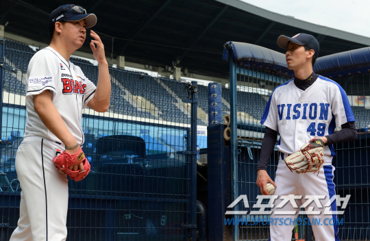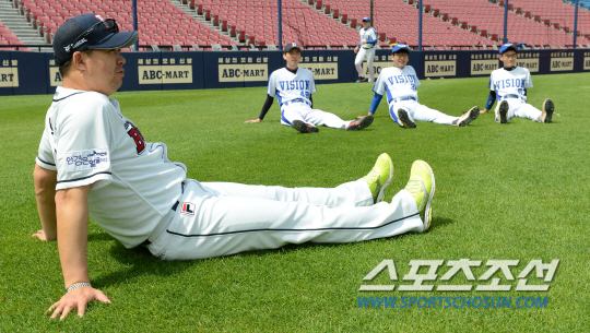 스트레칭은 둥그렇게 모여 앉아 진행됐다. 이현승은 "두산 1군 투수들이 경기 전 하는 것"이라며 동작 하나하나를 자세히 설명했다. "투수의 생명은 유연성입니다. 몸이 딱딱하면 절대 좋은 공을 던질 수 없습니다. 저도 하루에 2~3시간 유연성 운동을 합니다. 제가 그래도 팀 내에서 유연한 편입니다." 스트레칭이 끝나자 다들 일렬로 섰다. 우익수 자리에서 중견수 자리까지. 짧은 거리를 수 차례 왕복해서 뛰며 땀을 쏟았다. "많이 달리셔야 합니다. 많이. 그래야 좋은 공을 던질 수 있어요. 또 던진 다음날 러닝을 해야 뭉친 근육이 빨리 풀립니다. 앞으로는 싫어도 무조건 뛰시는 겁니다. 저와 약속하시는 겁니다."