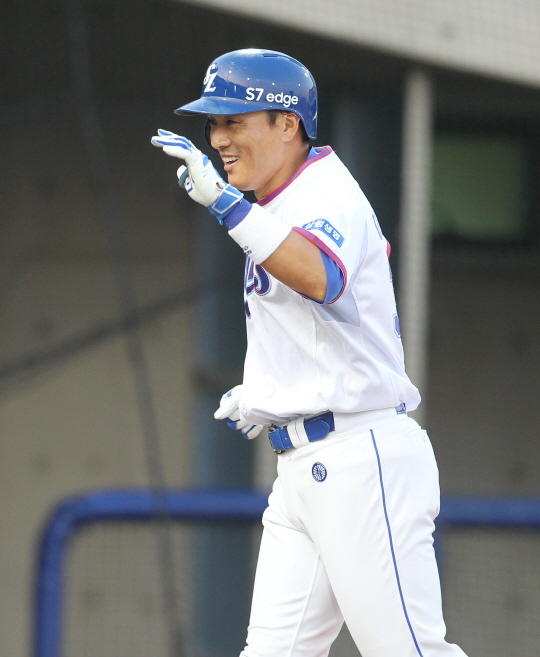 이승엽이 모처럼 환하게 웃었다. 지난 18일 포항구장에서 열린 한화 이글스와의 홈게임에서 1회 큼지막한 3점홈런을 터뜨렸다. 몸쪽 낮은 직구를 툭 걷어올렸는데 우측담장을 넘어갔다. 홈런 타구는 자신이 지난해 달성한 통산 400홈런을 기념해 만든 '400존' 바로 우측에 떨어졌다. 올시즌 4호 홈런이다. 지난달 29일 한화전에서 시즌 3호 홈런을 터뜨린 지 19일만에 나온 홈런이다.