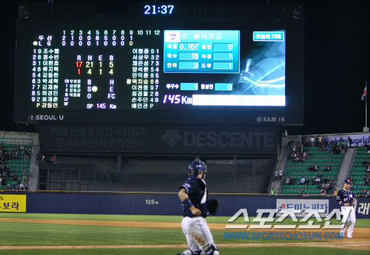 | 5월 4일 잠실야구장에서 2016 프로야구 두산과 LG의 경기가 열렸다. 두산이 17대 1로 대승을 거둔 잠실야구장 전광판. 잠실=김경민 기자 kyungmin@sportschosun.com / 2016.05.04. |
