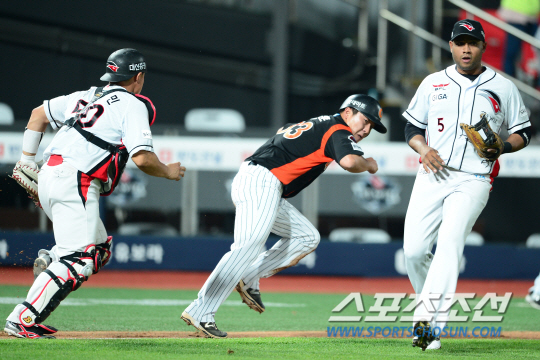 정 훈은 앞선 3회말 타석에서도 번트 실패로 흐름을 끊은 바 있다. 선두 황재균이 볼넷을 얻어 출루해 정 훈에게 희생번트 사인이 나갔지만, 공을 포수 앞에 떨구는 바람에 포수-유격수-2루수로 이어지는 병살타로 연결되고 말았다.