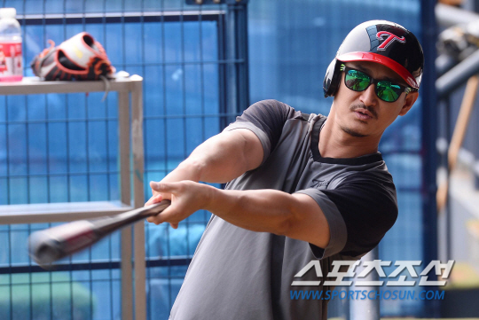 2016 프로야구 KBO리그 LG트윈스와 삼성라이온즈의 경기가 7일 서울잠실야구장에서 열렸다. 경기전 LG 박용택이 덕아웃에서 타격훈련을 하고 있다. 잠실=최문영 기자 deer@sportschosun.com