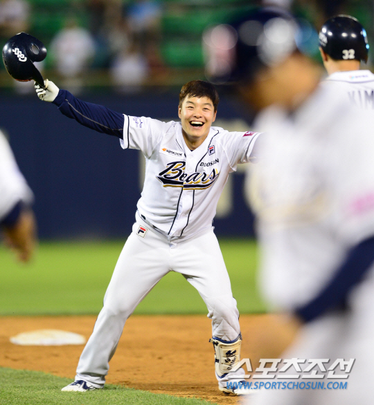 불펜 때문에 경기를 어렵게 끌고 간 두산은 아이러니하게도, 상대 마무리를 두들겨 승리를 가져왔다. 4-4로 맞선 연장 11회말 1사 2루. 민병헌이 롯데 손승락을 맞아 끝내기 안타를 때렸다. 불펜 난조로 울다가 웃은 두산이다. 끝내기 안타는 이번 시즌 12번째이고, 민병헌 개인으로는 3번째다. 승리의 행운은 두산 세번째 투수 윤명준에게 돌아갔다.