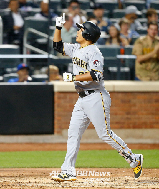 강정호는 2회 첫 타석에서 볼넷으로 출루했다. 상대 선발 투수 제이콥 디그롬의 유인 변화구를 잘 골라 나갔다.