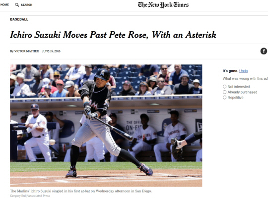 스즈키 이치로(마이애미)의 미일통산 최다안타 기록을 두고 논란이 뜨겁다. 일본언론들은 열광하고, 미국언론들은 다소 차분하게 피트 로즈와 이치로를 재조명하고 있다. 이 가운데 미국의 유력언론 뉴욕 타임즈가 관련 분석기사를 실었다.