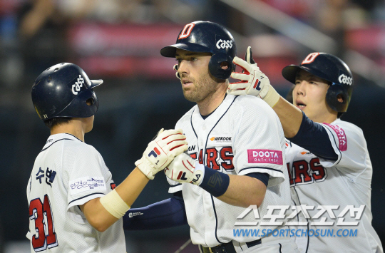 2016 프로야구 KBO리그 두산베어스와 kt위즈의 경기가 21일 서울 잠실야구장에서 열렸다. 두산 에반스가 4회말 1사 만루에서 좌중월 만루 홈런을 치고 박건우의 축하를 받고 있다. 잠실=최문영 기자 deer@sportschosun.com