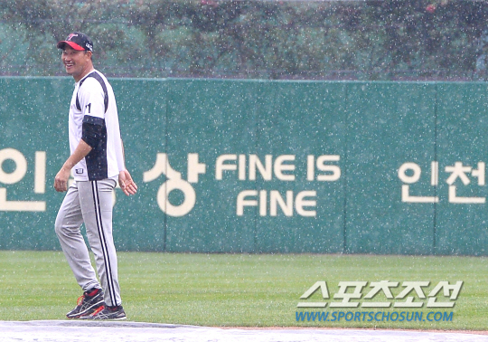 양팀 선수들은 정상적으로 경기를 준비했고, 경기 시작 5분여 전 시구 행사가 진행됐다. 홈팀 SK 선수들이 모두 수비를 위해 그라운드로 나왔다. 하지만 그라운드 라인을 그리고, 내야 일부에 흙 다지기 작업을 하는 게 오래 걸렸다. 심판진이 그라운드를 보며, 더 정비해야 할 곳이 있다고 판단해 보수 지시를 내렸다. 오후 6시 35분까지 약 10분 여간 그라운드에 서있던 선수들은 일단 덕아웃 철수 명령을 받았다.