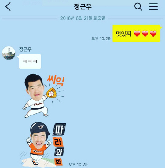 [스포츠조선닷컴 홍민기 기자] SBS 스포츠 정우영 아나운서가 한화이글스 정근우와 나눈 대화를 공개했다.