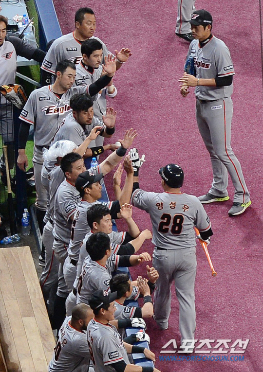 한화가 28일 넥센에 13대3으로 대승을 거두며 탈꼴찌 교도보를 확보했다. 경기전 예상은 넥센의 우세였다. 전날까지 상대전적도 넥센이 6승3패로 절대 우위. 넥센 선발 신재영은 직전까지 다승 공동선두(10승2패), 평균자책점 1위(2.71)에 빛나던 '괴물 신인'. 볼스피드는 최고 140㎞ 언저리지만 칼날 제구가 일품이다. 하지만 한화 타자들의 방망이는 쉴새없이 돌아갔다. 5개의 홈런(팀 시즌 최다)을 몰아치며 상대 에이스를 궁지에 빠뜨렸다.