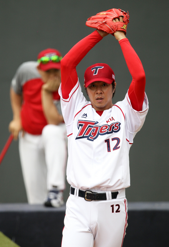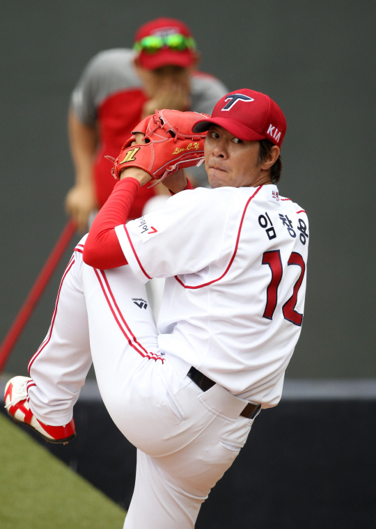 이날 경기전 임창용은 광주 기아챔피언스필드 외야 불펜에서 포수 백용환을 앉혀놓고 불펜 피칭을 했다. 김 감독은 이 모습을 이대진 투수코치, 유동훈 불펜코치와 함께 지켜봤다. 김 감독은 "공을 받은 백용환에게 물어봤더니 공의 회전이 좋다고 했다"고 설명했다.